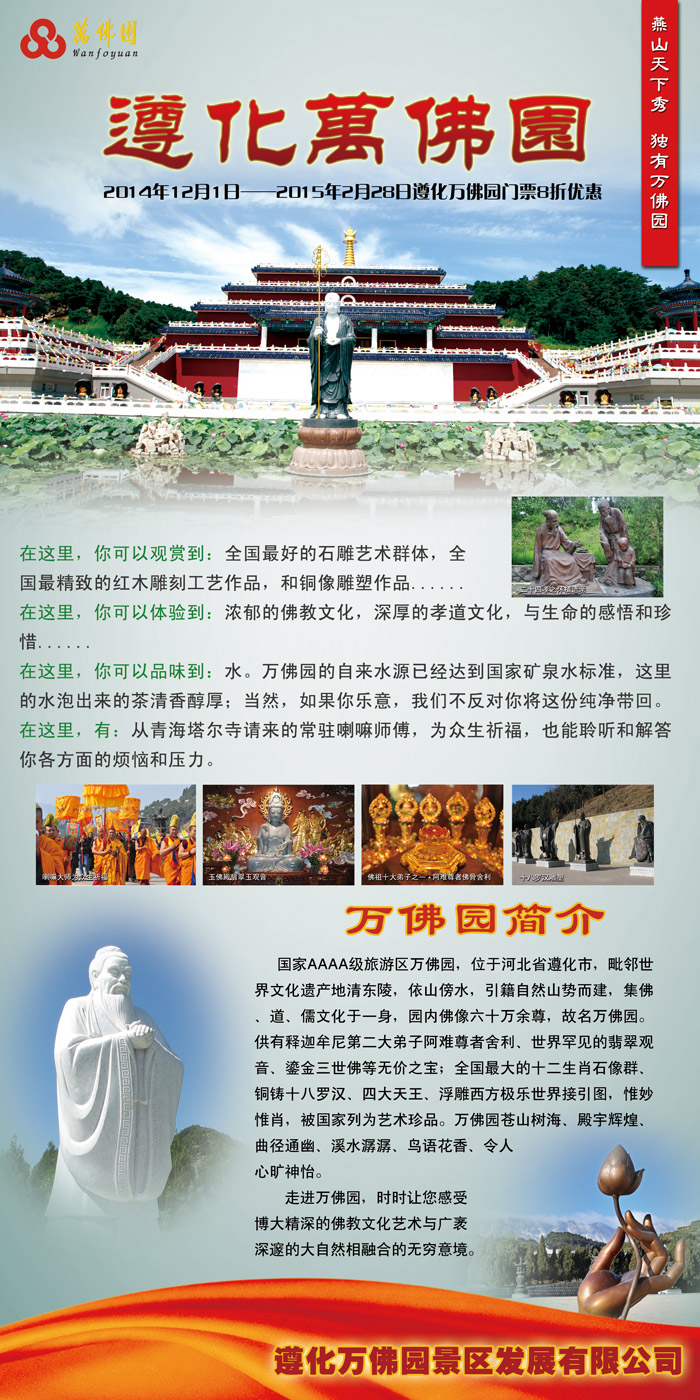 万佛园门票优惠公告 2014年12月1日至2015年2月28日万佛园门票8折优惠