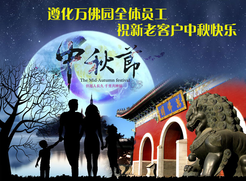 月到中秋分外明,又是一年团圆日。在这中秋月圆之际,在这亲朋团圆之日,遵化万佛园全体员工为新老客户送上..