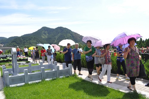 图:双龙山公墓同行参观金宝塔东侧艺术成品墓区