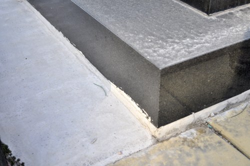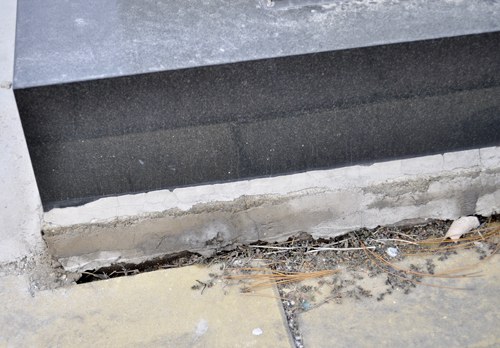 图:(改造前)北方天气干燥,到了冬天墓碑底部会用开裂的痕迹。