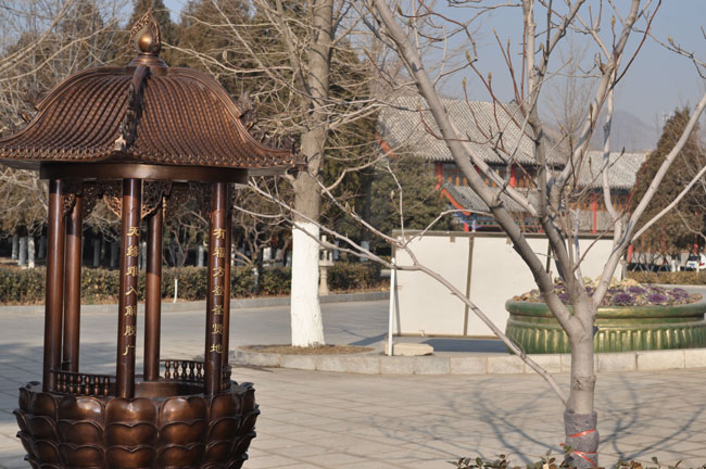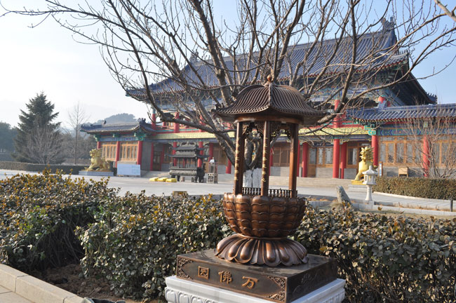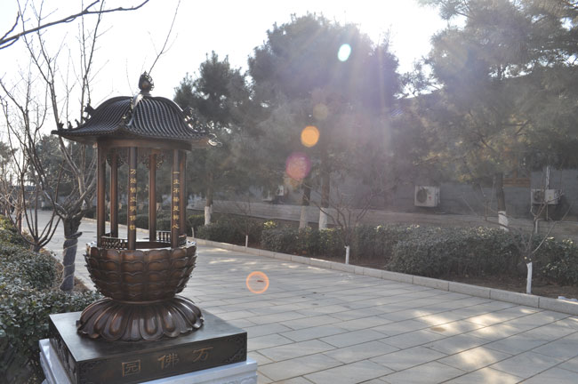 2015年1月4日,万佛园对AAAA景区的改造升级又有新举措,对园区多年以来的青白石路灯以旧换新,新换的60盏路灯均采用青铜铸造,造型古朴典雅,雍容华贵,层层莲花底座托举六角古亭,配以汉白玉须弥座,明暗交叉,光亮有度。每座铜灯高126公分,铜灯上镌刻着“有福方登圣贤地,无缘难入解脱门”。