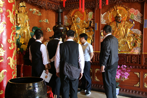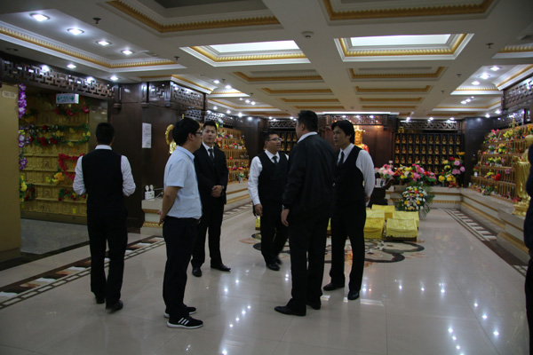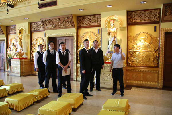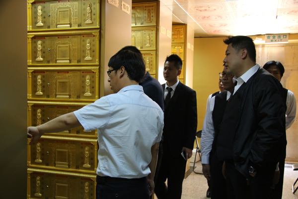今天中午,台湾殡葬行业人员到万佛园参观交流,我园导游人员为同行业的同仁们详细的讲解了园区发展历史,并带领大家参观了金宝塔、玉佛殿、神路、地藏殿等景观,台方人员对我园区的建设赞不绝口。