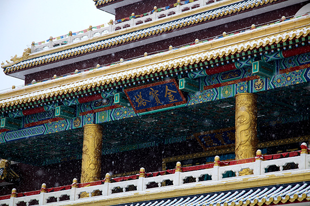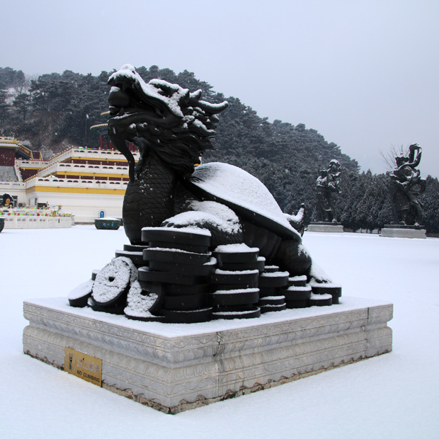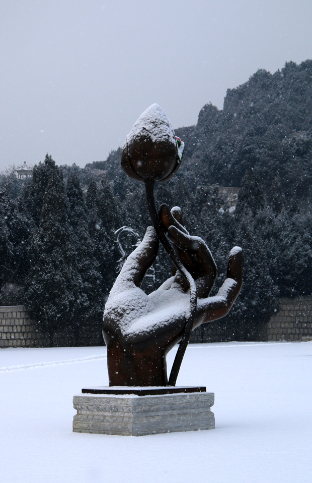 春节临近,“雪姑娘”再度“酝酿情绪”,在今夜为万佛园带来了一场美丽的冬雪,银装素裹下的万佛园就宛如一幅天然的水墨画。