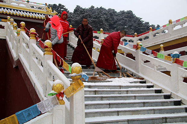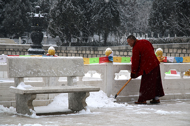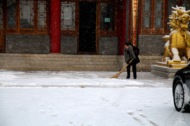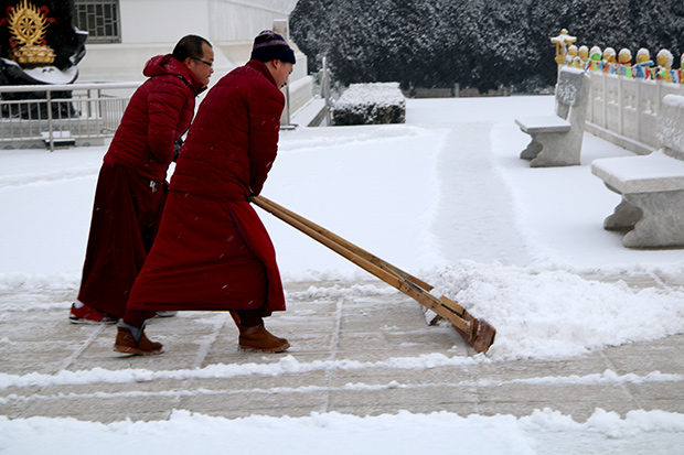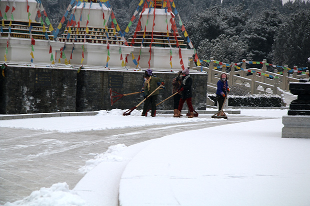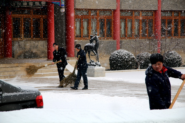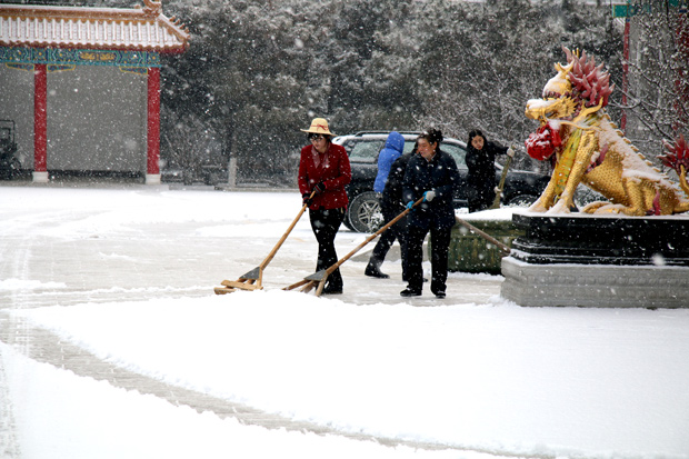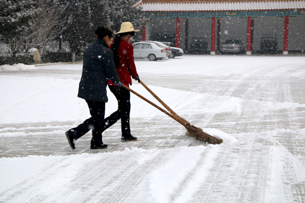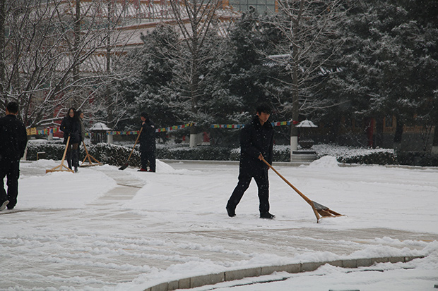今晨,万佛园迎来了一场大雪,为了保障客户安葬及祭扫的安全及畅通。迎风雪、战严寒,采取道路清雪、铲雪等措施,尽量减少降雪给客户安葬祭扫带来的影响,万佛园的全体员工投入到清雪工作中,园区主干道交通的恢复正常通行。为客户安葬祭扫提供了踏踏实实的保障。这种热火朝天的劳动场面也是员工们的另一精神面貌的体现,积极工作,热爱劳动,心往一处想,劲往一处使,正印证了那句话:团结就是力量。