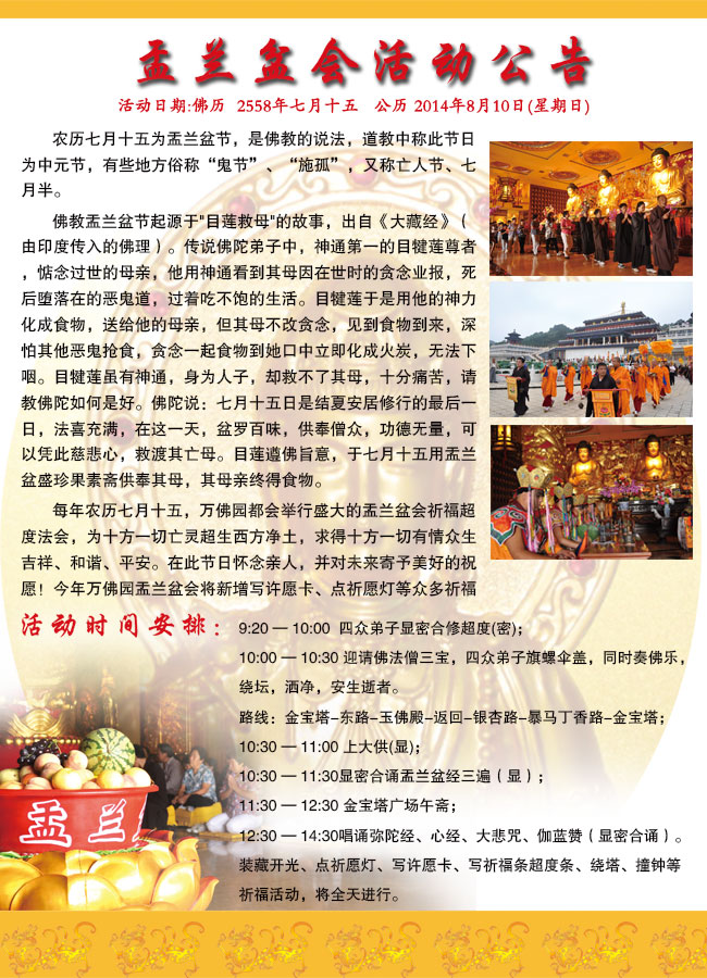 2014年万佛园盂兰盆会大型法会活动公告
