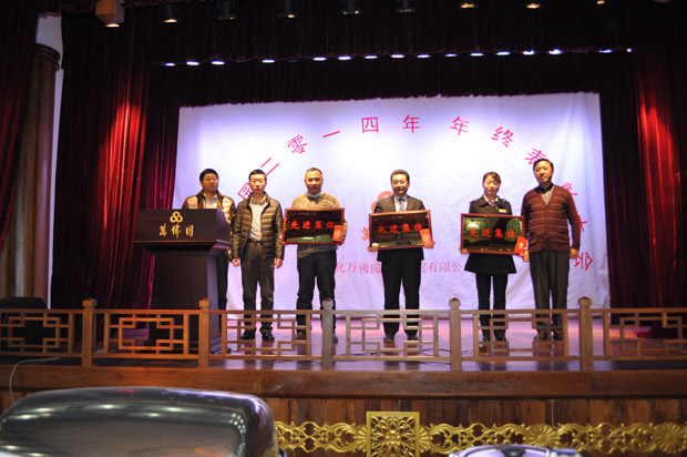 在2014年的工作中涌现了一大批先进工作者,万佛园评选出了2014年度先进集体3个,先进个人11名,部门先进员工8名,希望受到表彰的先进集体和个人发扬成绩,戒骄戒躁,再接再厉,在新的一年再创佳绩,万佛园全体员工要以先进为榜样,立足岗位,扎实工作,为推动万佛园的发展做出更大的贡献。