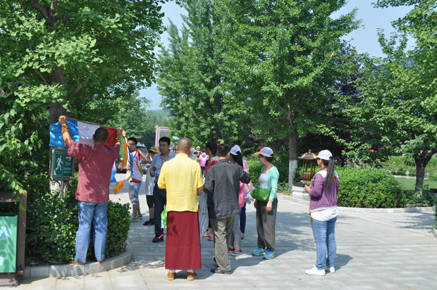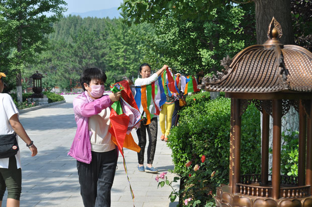 今天上午,广大信众、居士来到万佛园挂献经旗,祈求世间一切生灵皆可往生净土,免除一切灾苦,愿众生平安祥和!